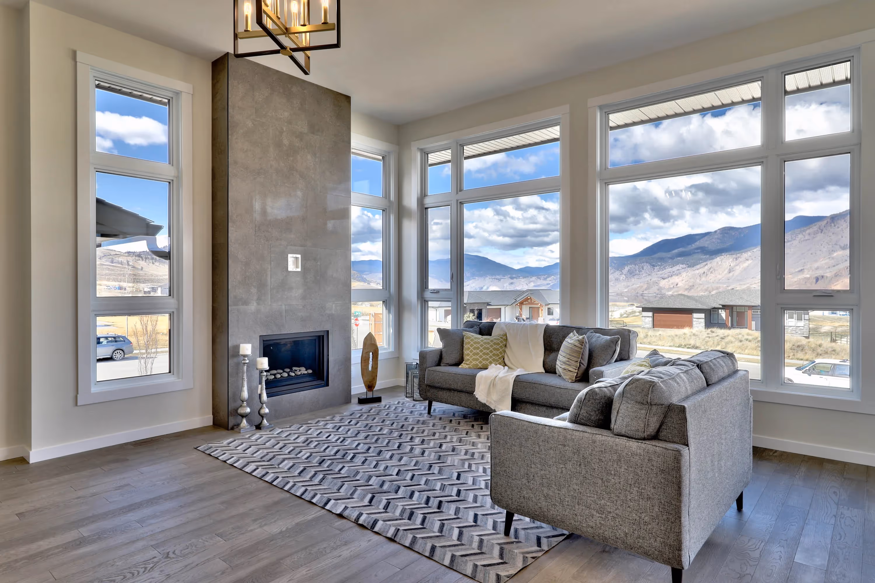Given the opportunity to donate our design services, we enjoyed the challenge of dreaming up a modern home that fit within the Tobiano Equestrian design guidelines on this large corner lot. Our primary inspiration for the home was to capture the stunning views of Kamloops Lake from both the kitchen and primary bedroom suite windows. This home also features a large 3-car garage for all the toys and an inviting over height split-level entry to welcome guests either up to the main floor living or down to the bright rec room in the walk-out basement.